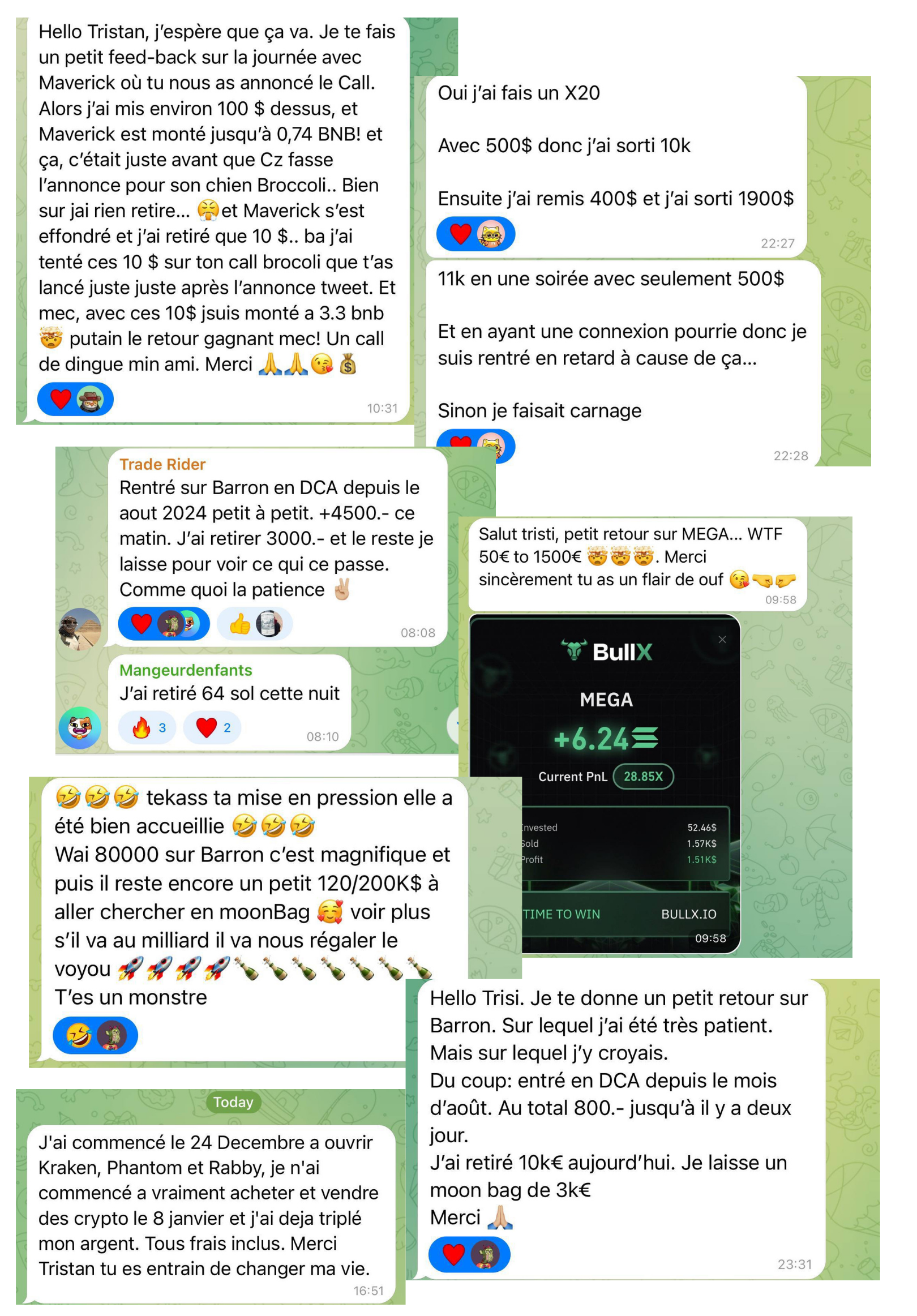 Je mettrai tout en œuvre pour te guider sur le meilleur chemin et que tu puisse prospérer avec moi. La crypto, les NFTs & les memecoins sont des leviers incroyables. Aucun autre domaine ne te permettra de doubler ton investissement de 20'000 euros à 40'000 euros en une nuit.